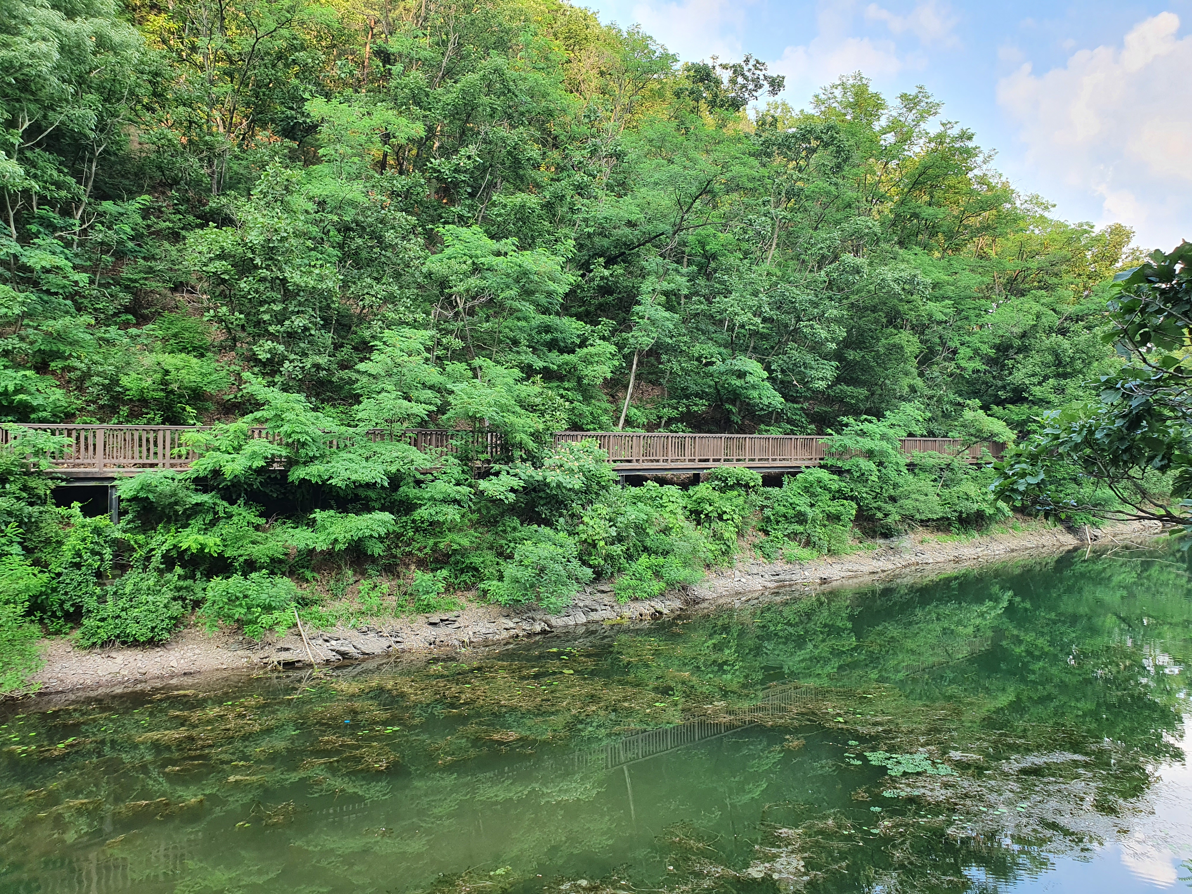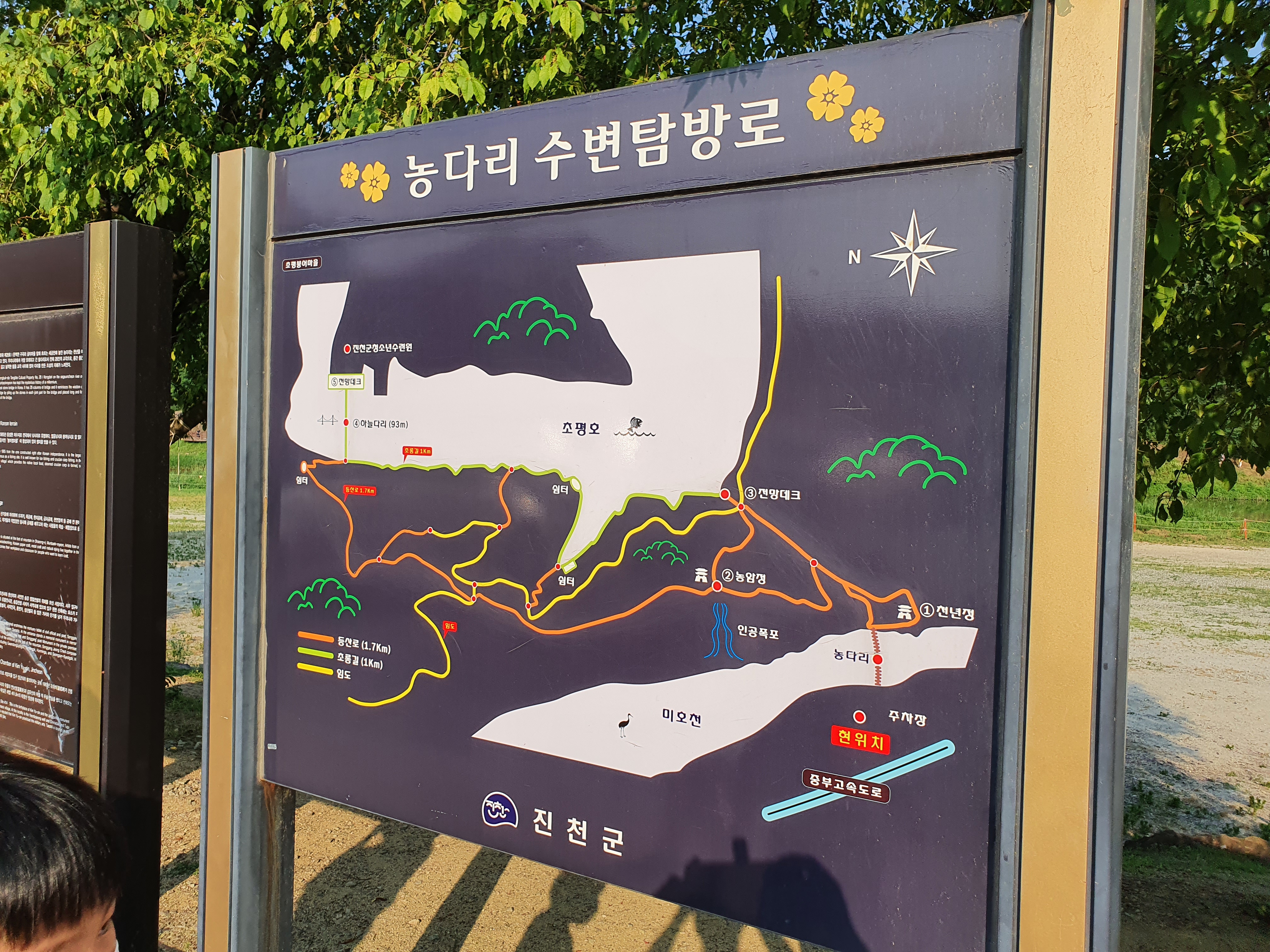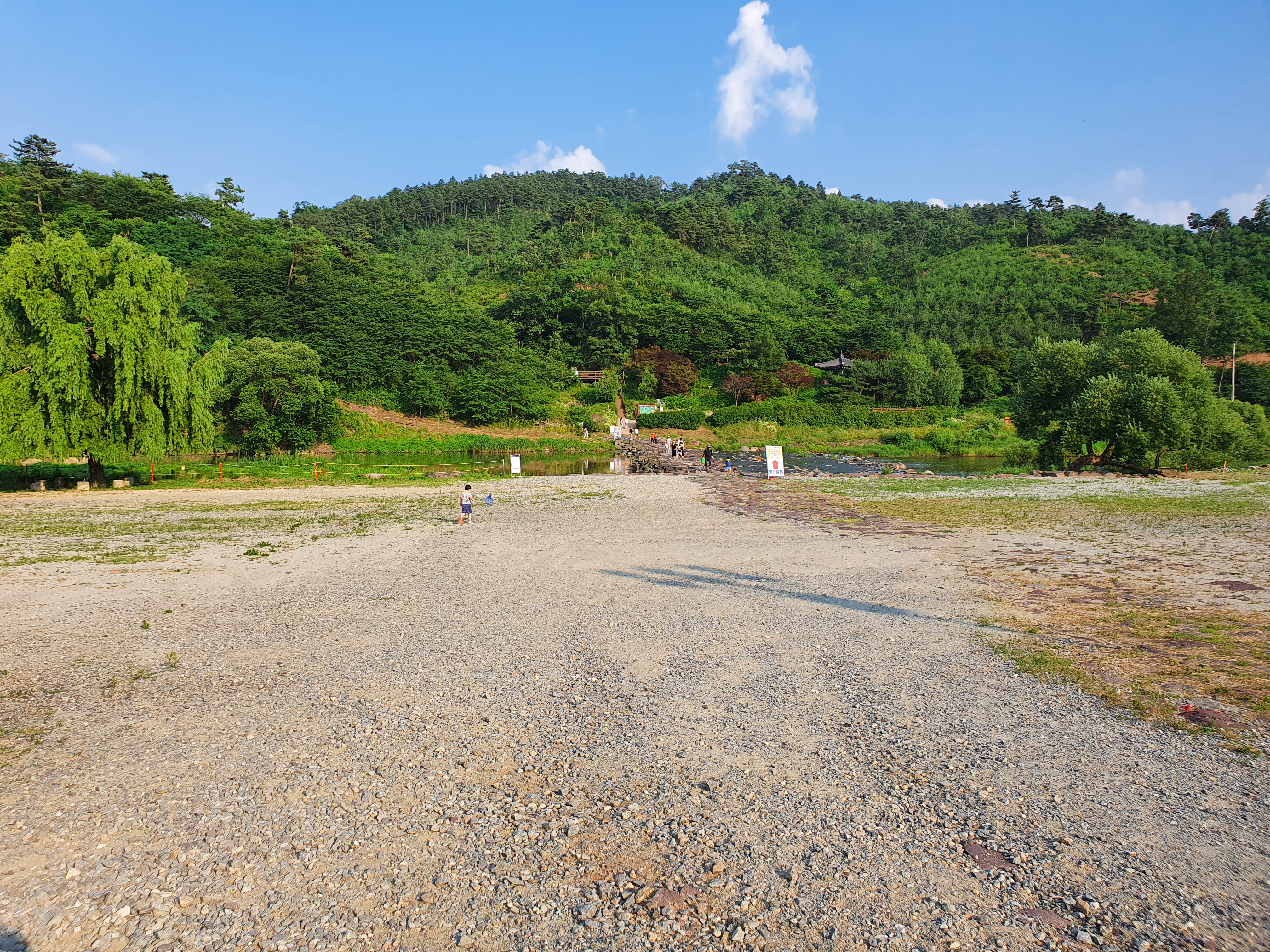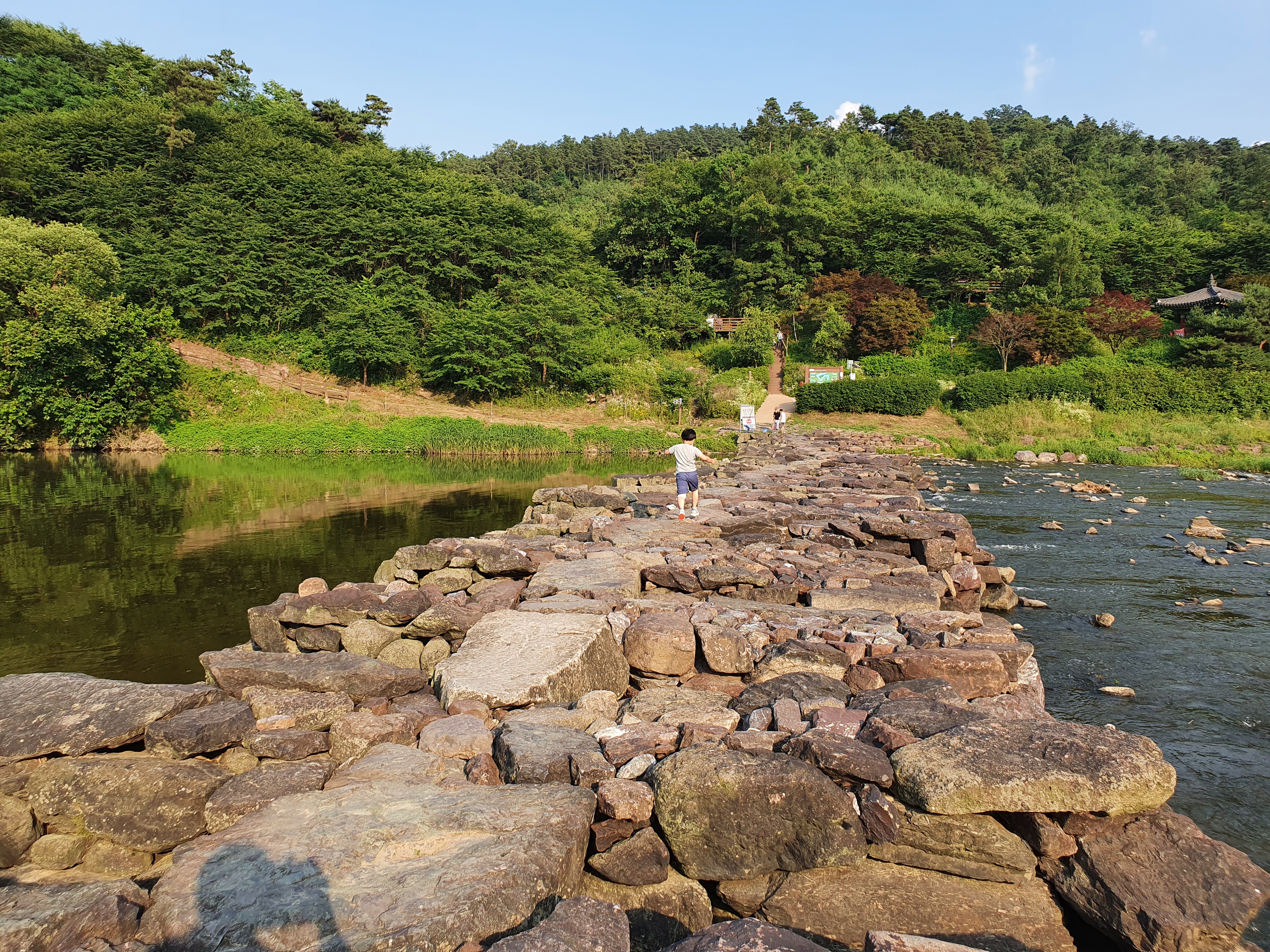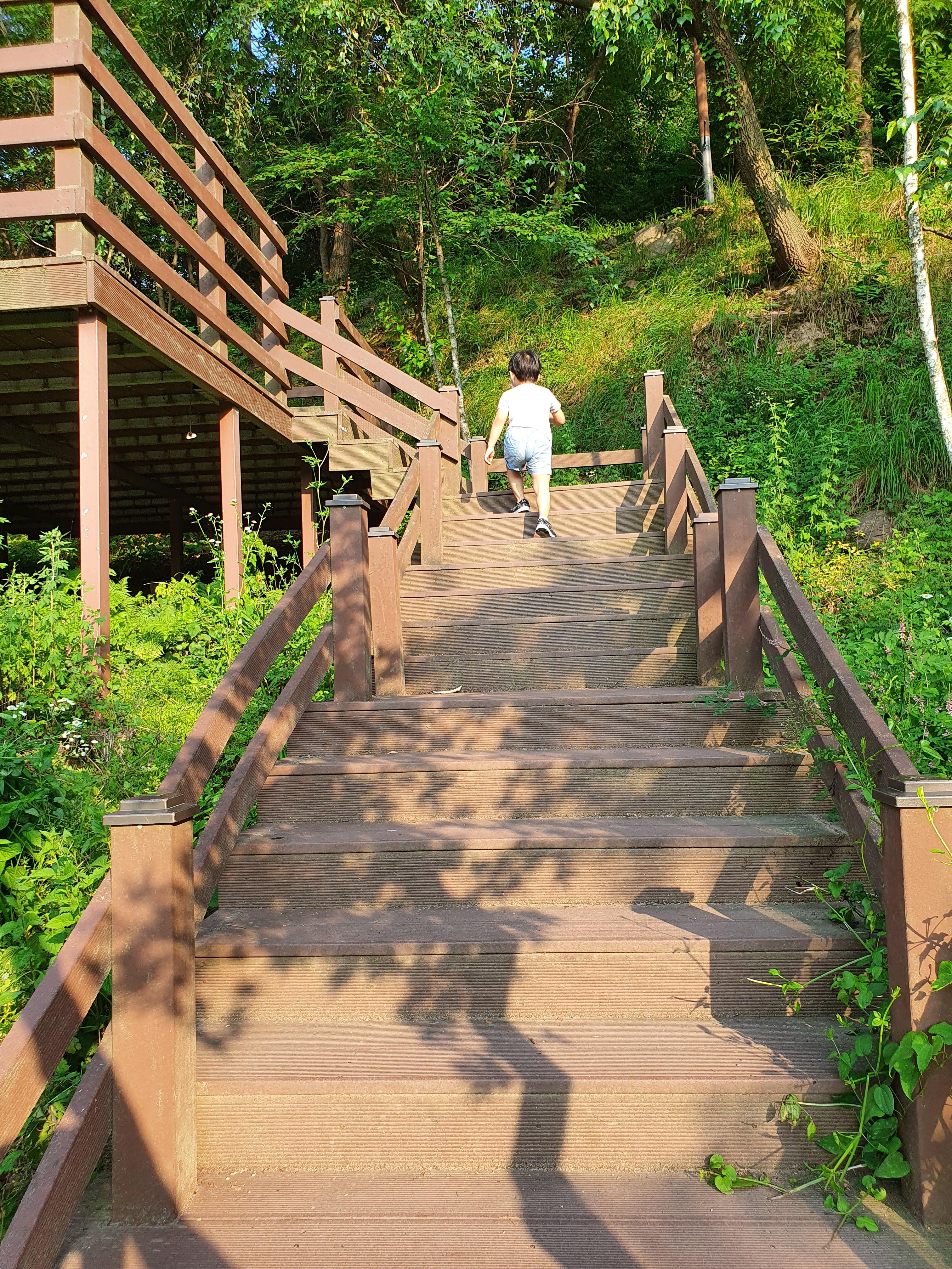 다양한 산책 코스가 있지만 5살 아이와 늦은 저녁(5~7시 산책) 적당한 코스. 하늘다리 매점은 일찍 닫는 듯 하여 물과 간식을 가져가면 좋을 듯 싶고 유모차로 이동 가능. 방심하고 갔다가 돌아 올 때 막내 업고 돌아옴.