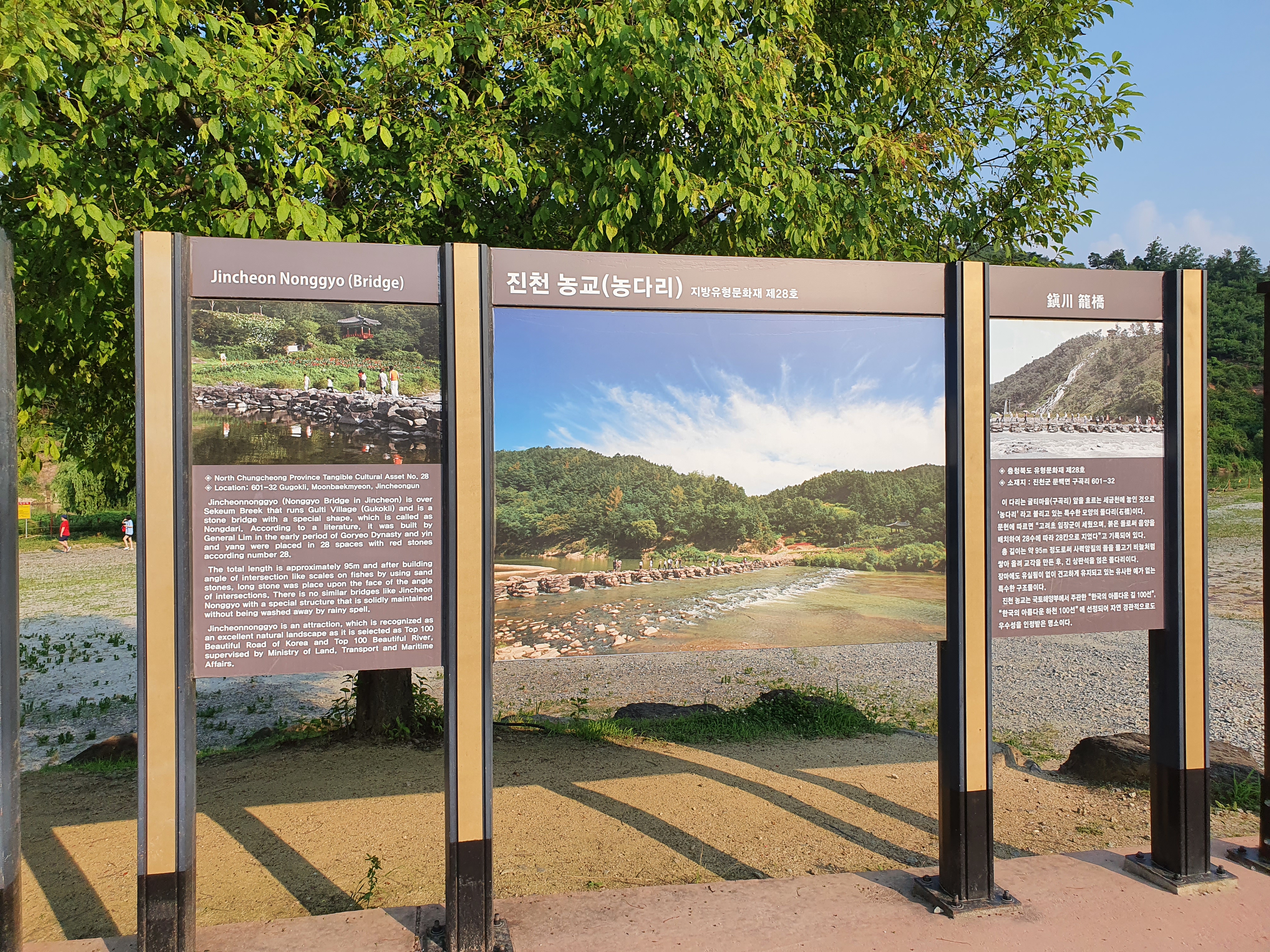 충북 진천의 농다리는 한국의 아름다운 길 100선과 아름다운 하천 100선에 선정된 곳으로 우리나라에서 가장 오래되고 긴 돌다리라고 함.
