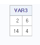 다음 예제는 PROC IML을 사용하여서 VAR1과 VAR2 행렬의 곱을 계산하여서 반환한다.