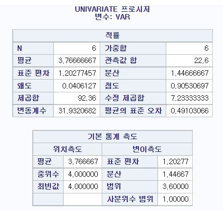 * PROC UNIVARIDTE를 사용하여서 최빈값을 계산;