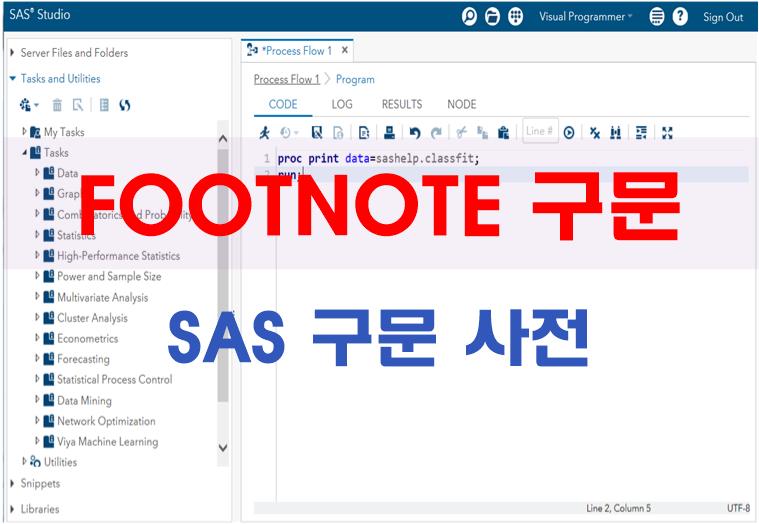| FOOTNOTE 구문 | 프로시져와 데이터 스텝 출력물의 하단에 10개 텍스트 라인(각주)을 작성한다. |