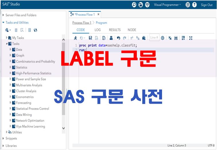PROC 스텝에서 LABEL 구문을 사용 할 수 있지만, 문법은 서로 다르다. 자세한 내용은 Base SAS 프로시져 참조.