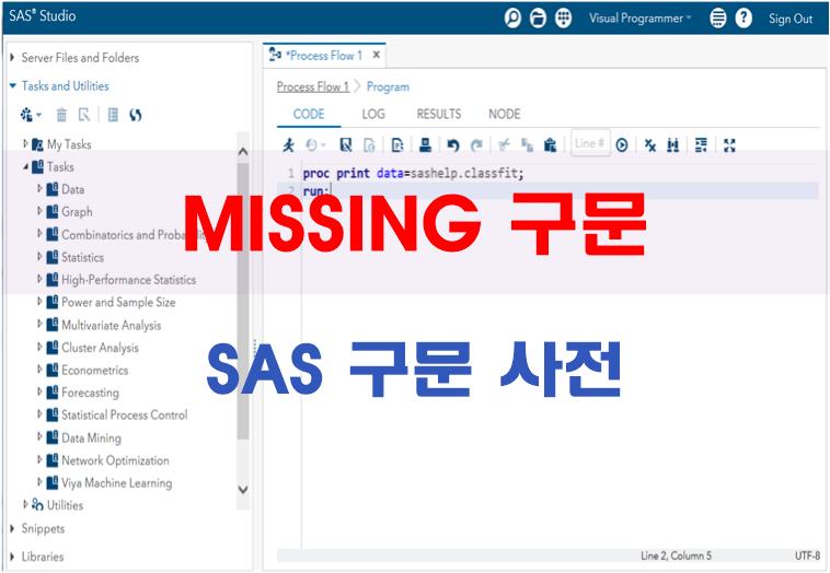 | MISSING 구문 | MISSING 구문은 입력 데이터에서 수치형 데이터의 특별한 결측치 값을 표현하기 위한 문자를 지정한다. |