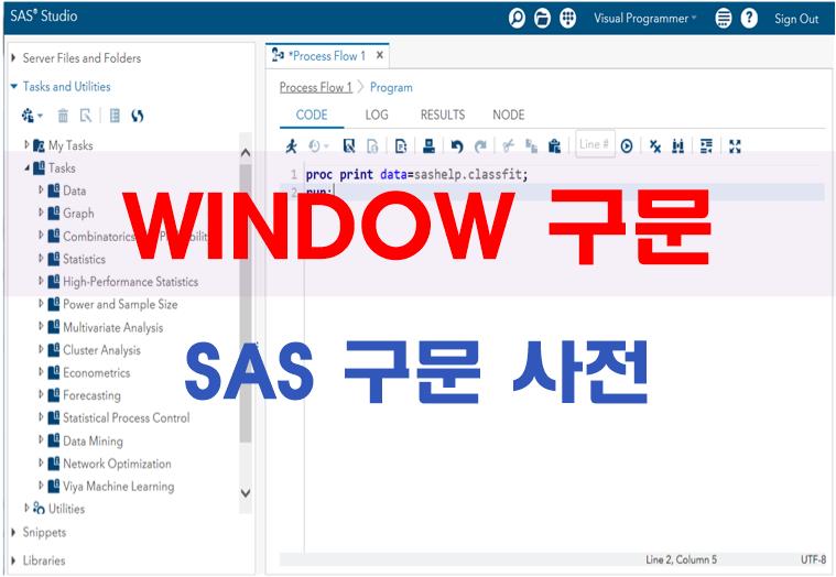 | 운영환경정보 : | WINDOW 구문은 운영환경에서 지정 할 수 있는 몇 가지 기능이 있다. 상세한 내용은 운영환경에 대한 SAS 도움말 참조 |