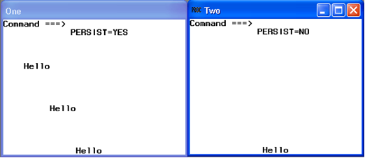 다음 예제는 PERSIST= 옵션을 설명한다. 현재 윈도우에서 커서를 위치시키고 ENTER를 눌러서 커서를 현재 위치에서 다른 곳으로 이동시킨다.