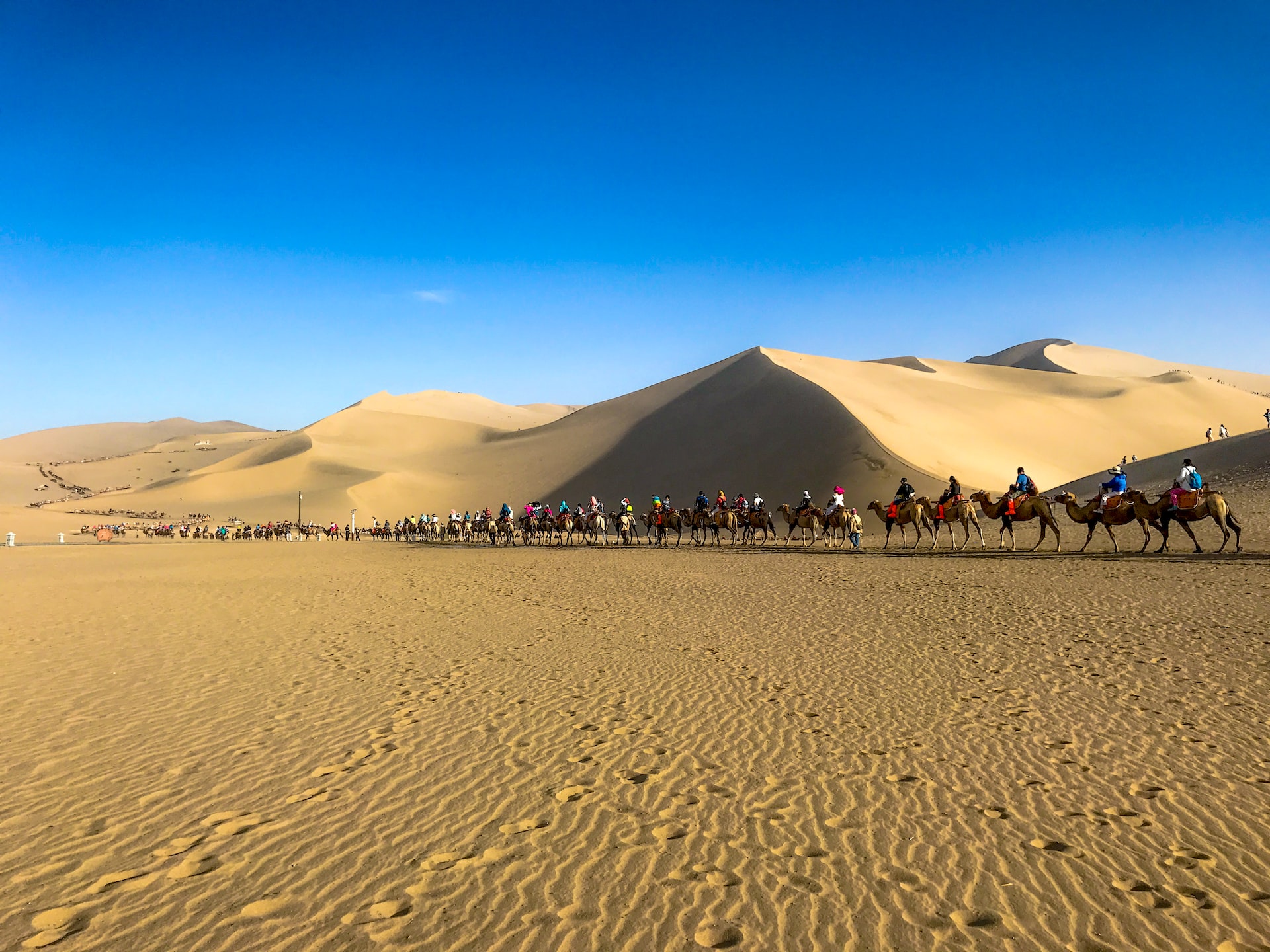 과거 실크로드의 황무지인 사막이 이제는 사람들이 즐기는 곳이 되었다.